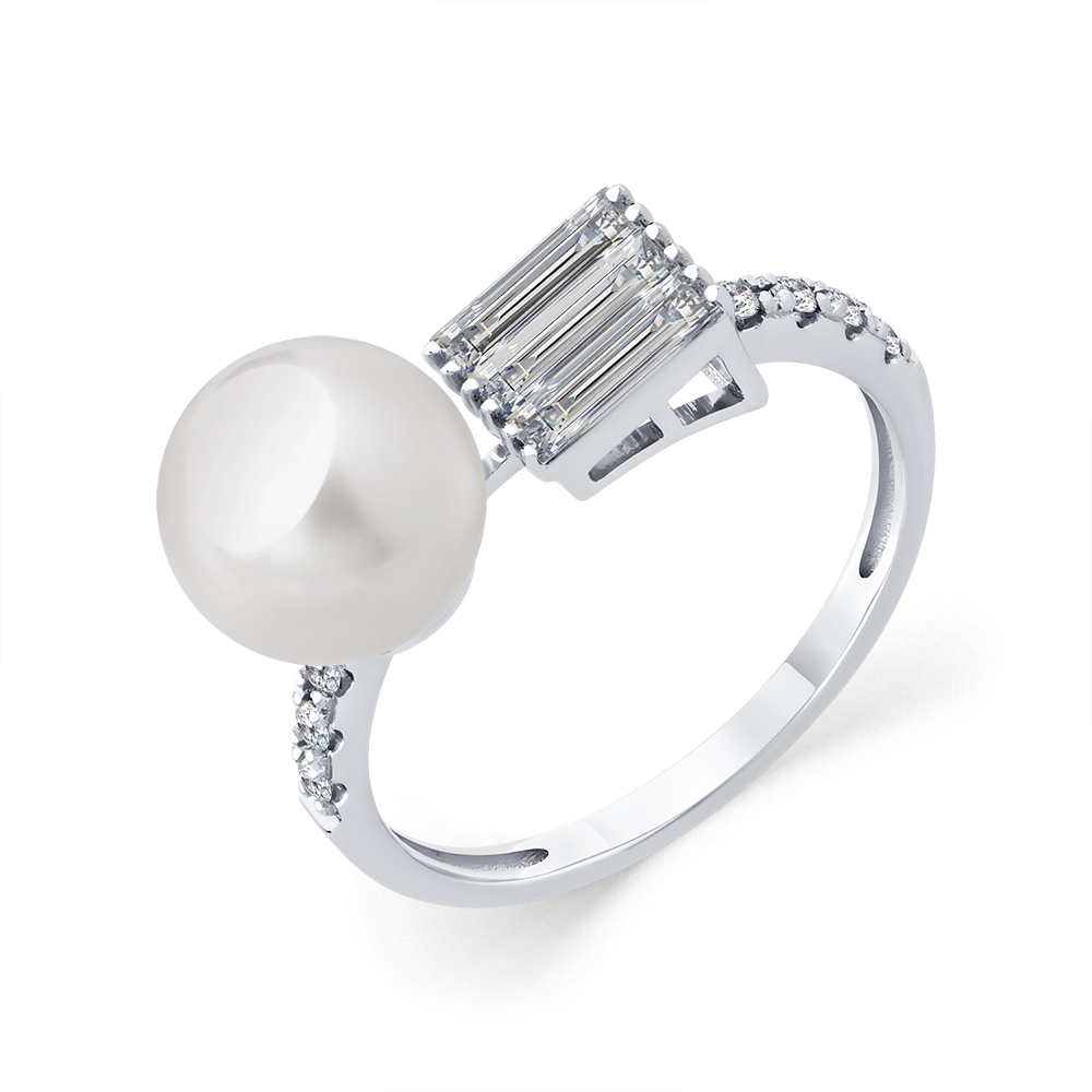 Кольцо белое золото 585 пробы со вставками бриллиант, жемчуг культивированный арт. 1-209402-00-28