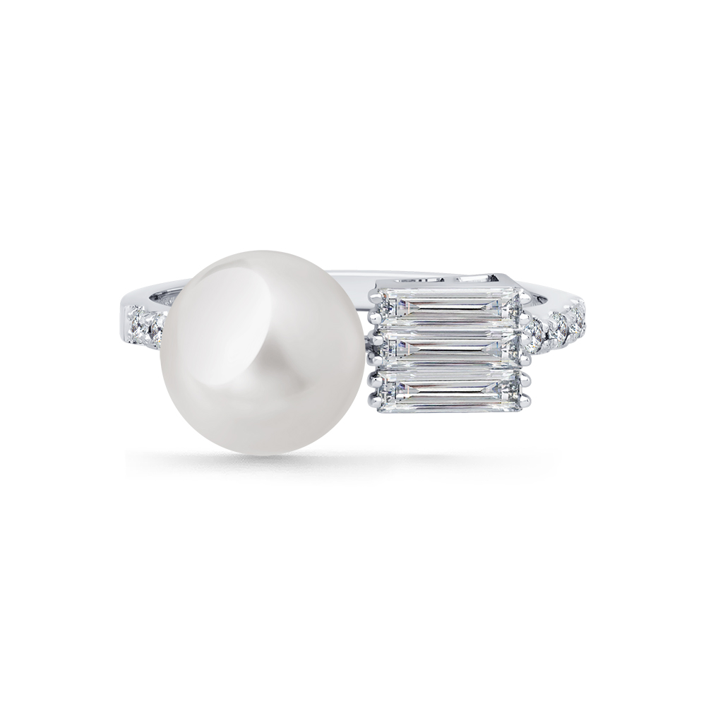 Кольцо белое золото 585 пробы со вставками бриллиант, жемчуг культивированный арт. 1-209402-00-28