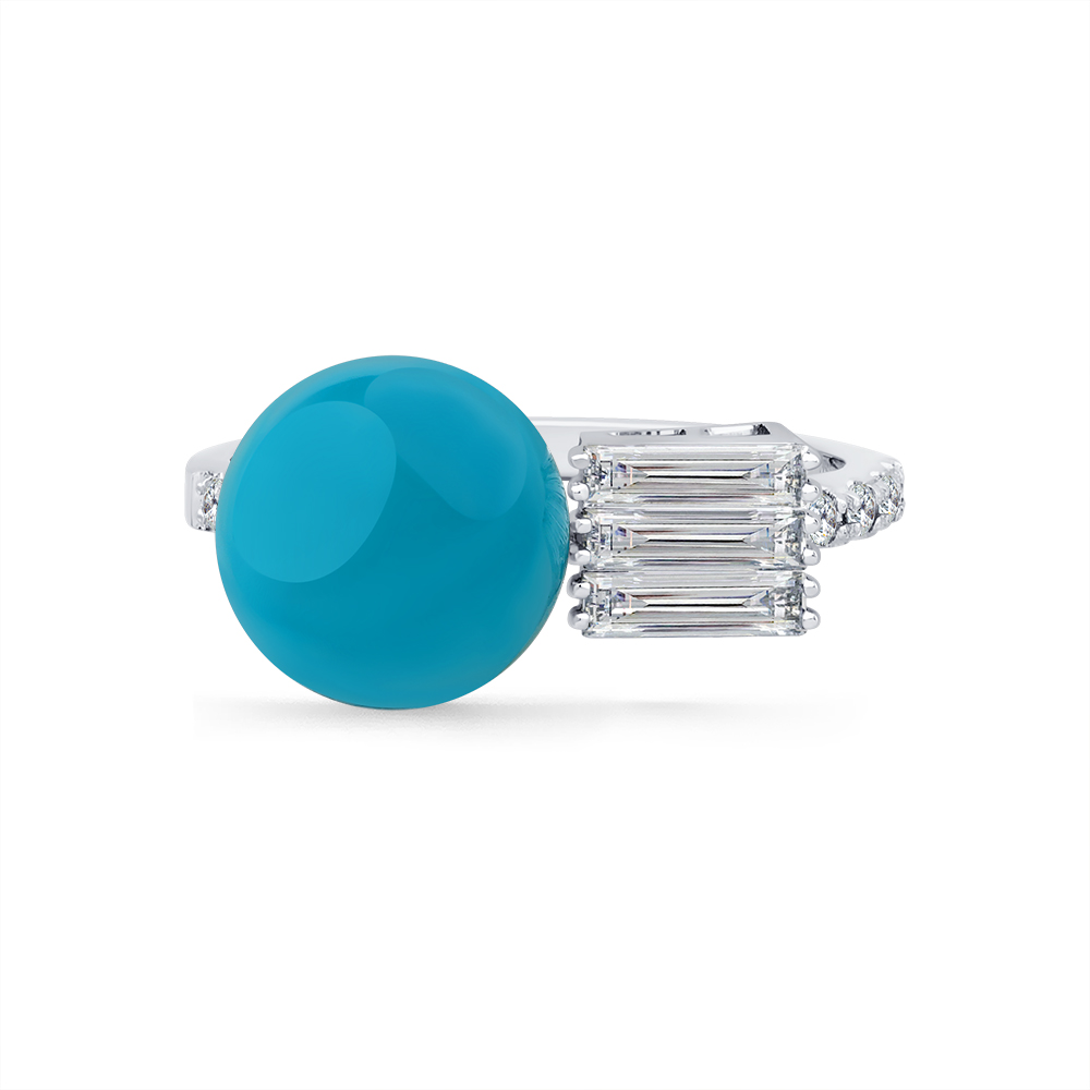 Кольцо белое золото 585 пробы со вставками бриллиант, бирюза