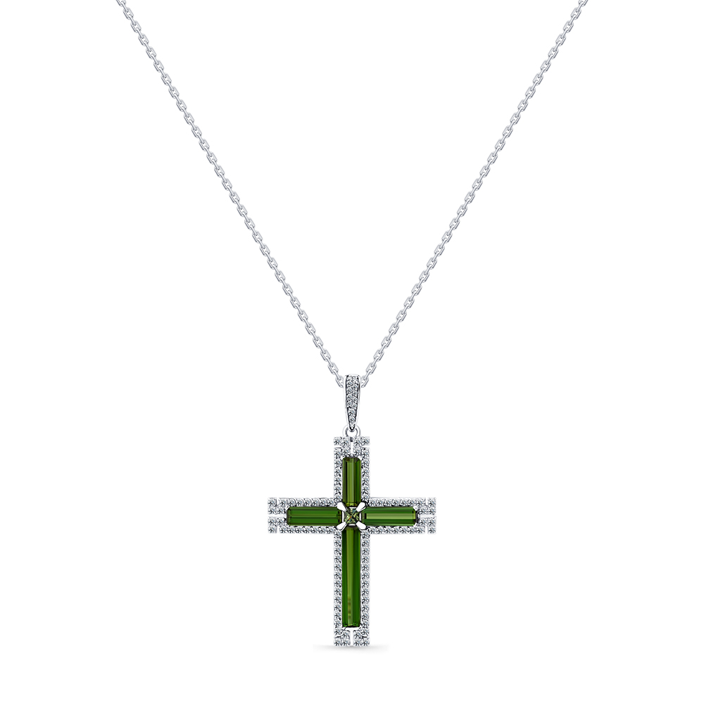 Колье белое золото 585 пробы со вставками бриллиант, сапфир облагороженный, турмалин арт. 6-260867-00-55