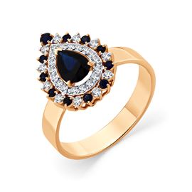Серьги красное золото 585 пробы со вставками бриллиант, сапфир н., сапфир облагороженный арт. 2-109370-00-55