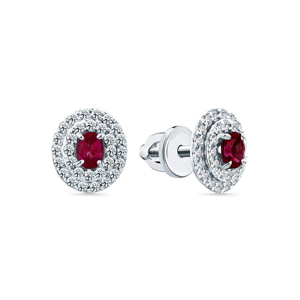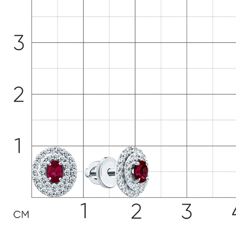 Серьги белое золото 585 пробы со вставками бриллиант, рубин н. арт. 2-202308-00-03