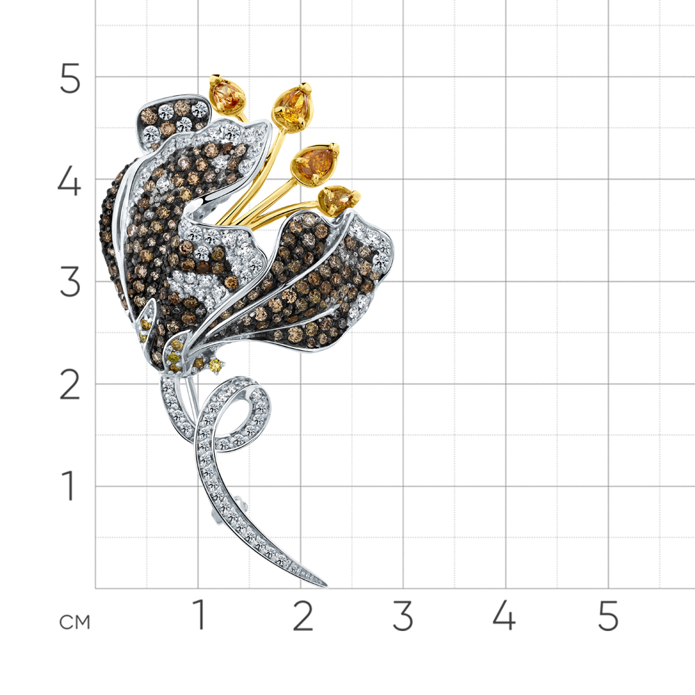 Брошь со вставками бриллиант, бриллиант коньячный, бриллиант оранжевый, бриллиант желтый арт. 7-570417-00-56