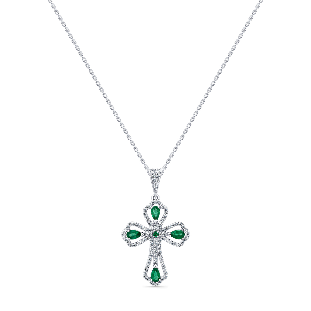 Колье белое золото 585 пробы со вставками бриллиант, изумруд н.