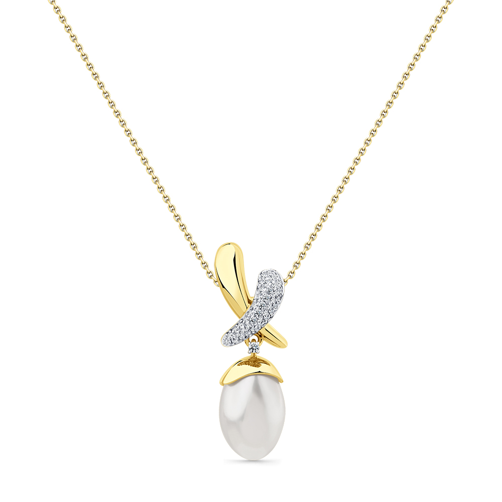 Колье жёлтое золото 585 пробы со вставками бриллиант, жемчуг арт. 6-360887-00-28