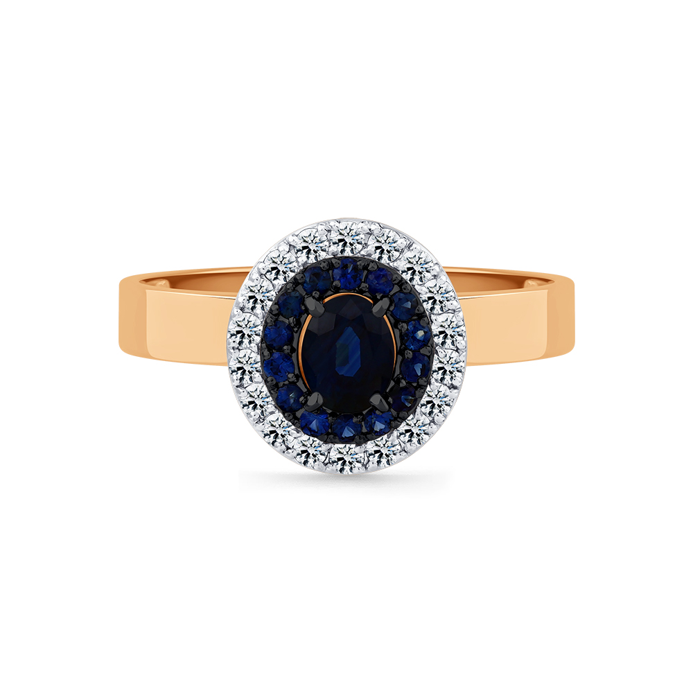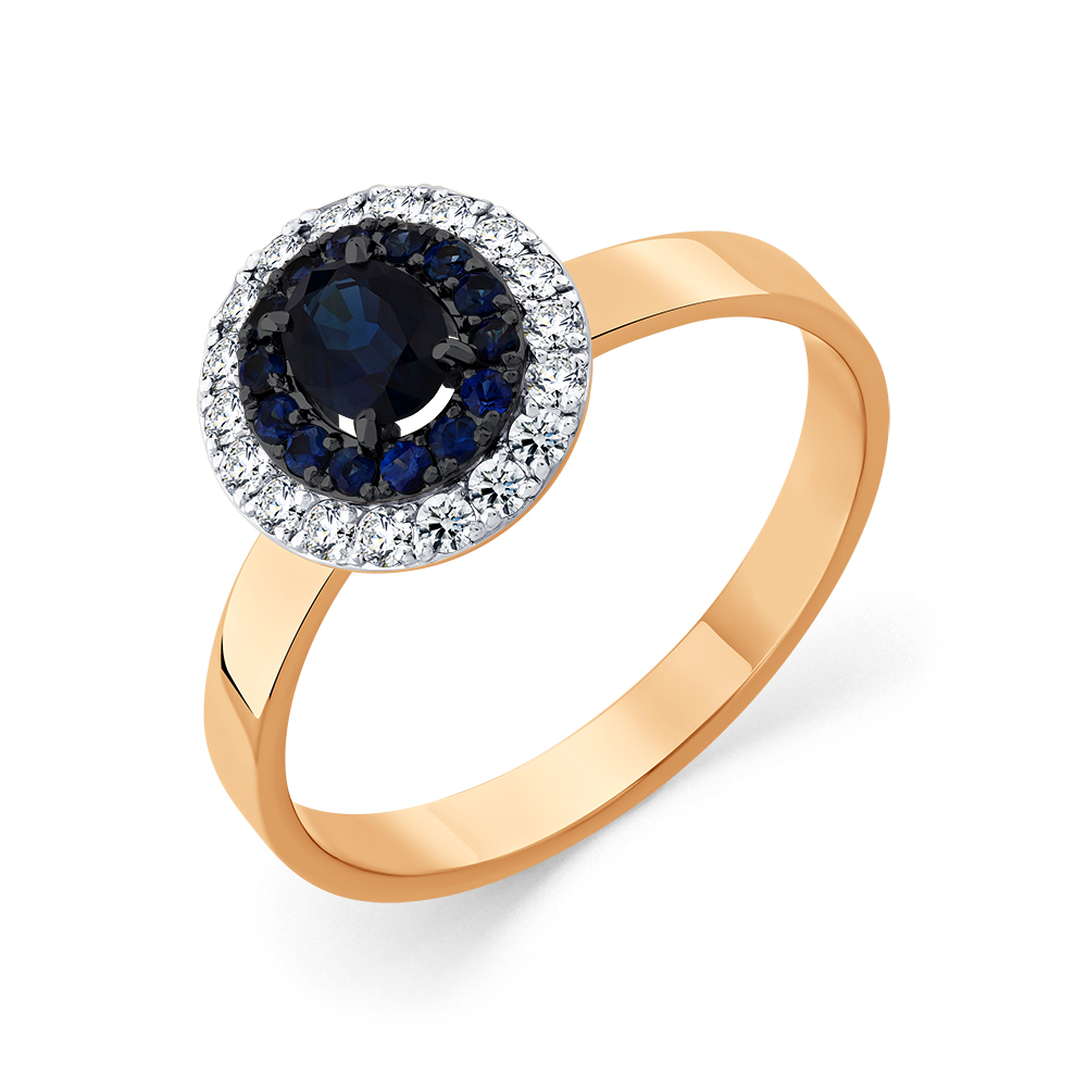 Кольцо красное золото 585 пробы со вставками бриллиант, сапфир н. арт. 1-109368-00-02