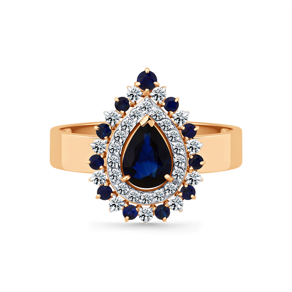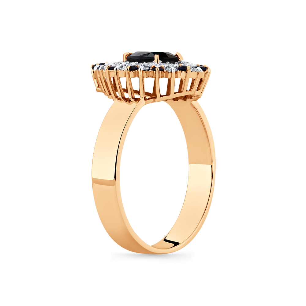 Кольцо красное золото 585 пробы со вставками бриллиант, сапфир н., сапфир облагороженный арт. 1-109370-00-55
