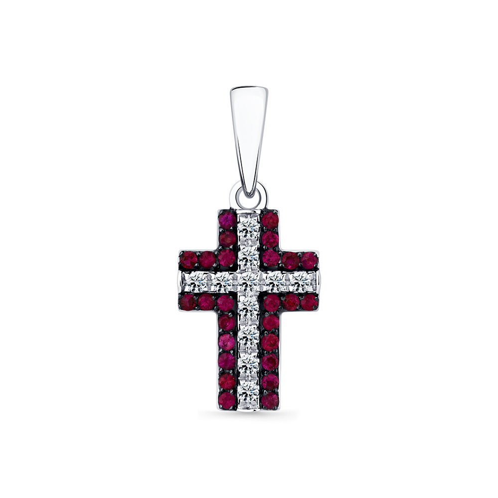 Крест белое золото 585 пробы со вставками бриллиант, рубин н. арт. 8-280459-00-03