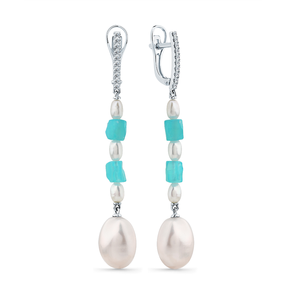 Серьги со вставками агат, бриллиант, жемчуг арт. 2-209412-00-55