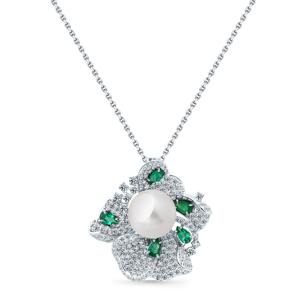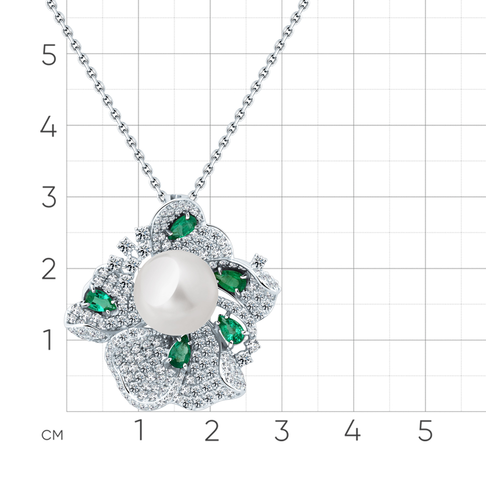 Колье белое золото 585 пробы со вставками бриллиант, жемчуг, изумруд н. арт. 6-260885-00-55
